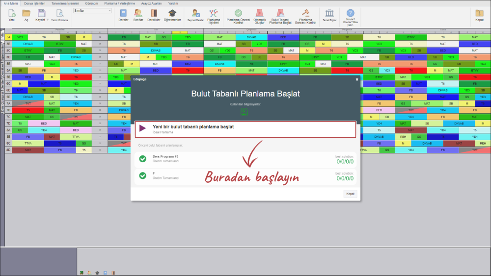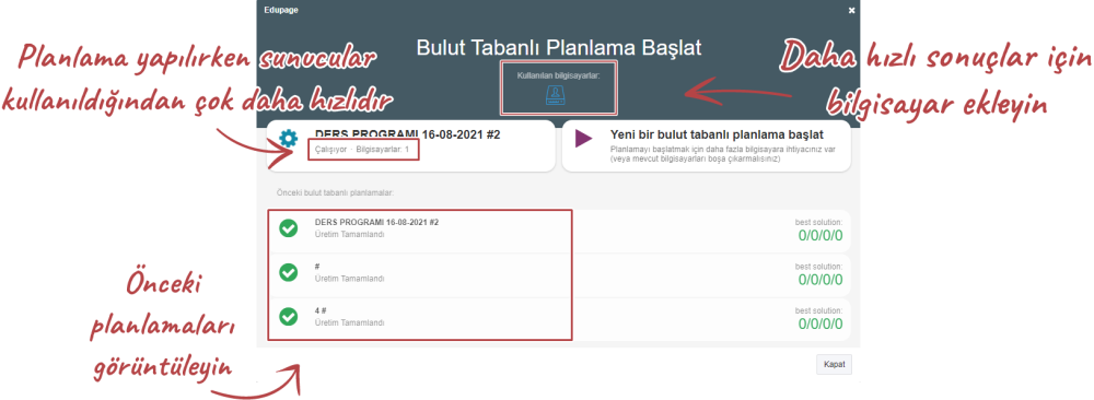 Bulut tabanlı planlama size ders planlama sırasında bulduğu tüm sonuçları gösterir.
