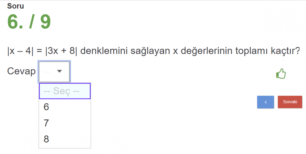 Öğrenci seçeneklerden birini seçer.