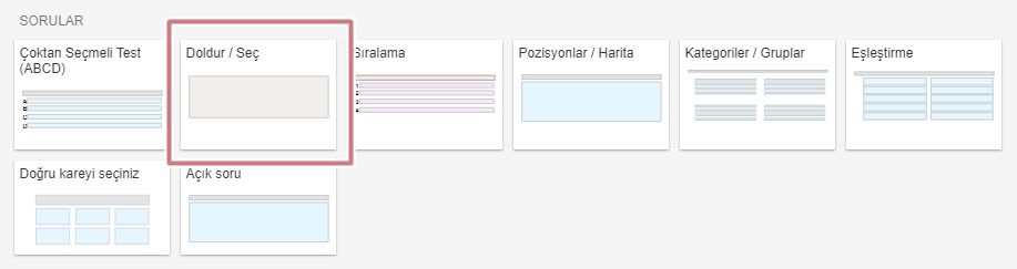 Doldur/Seç soru kartını seçin.