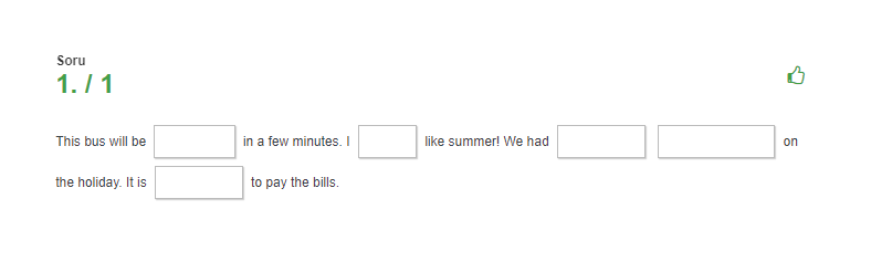 1. İlk tür: Doldurmalı soru tipi. Doğru cevapları köşeli parantezlerin içine yazın. Öğrenciler cevapları görmez.
