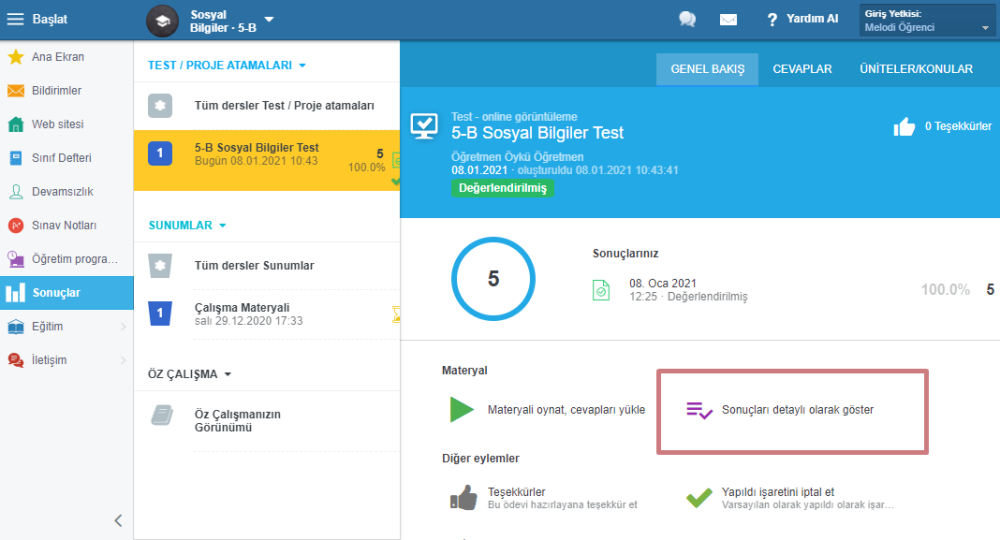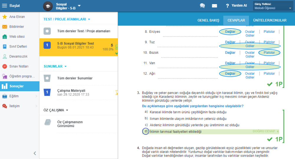 Bu da onlara derse/sınava hazırlanırken yardımcı olur. Veliler de bu bilgileri görebilir.