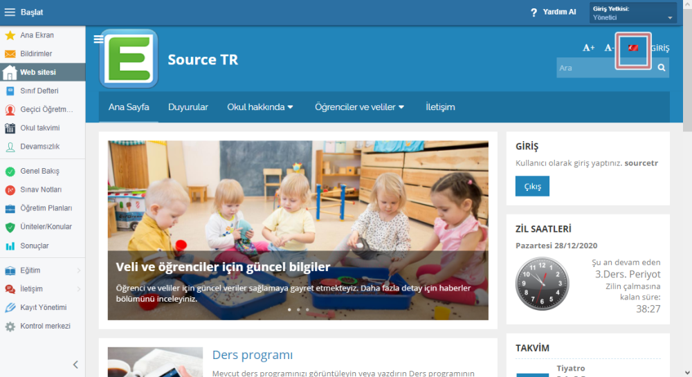 EduPage farklı dillerde görüntülenebilir.