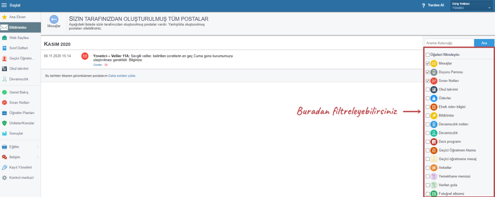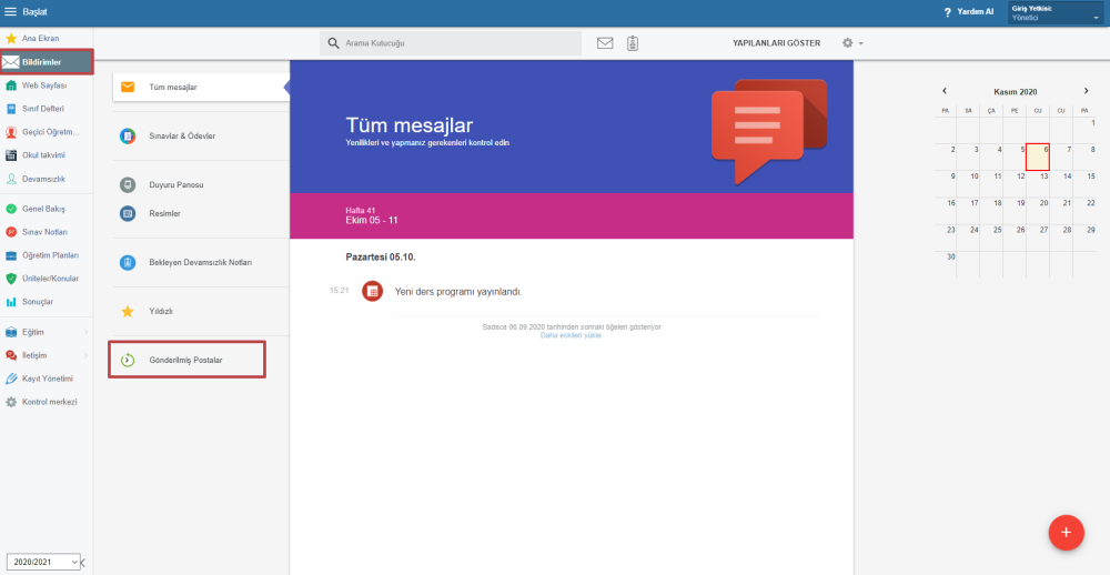 Soldaki Bildirimler menüsünden Gönderilmiş Postalar seçeneğine tıklayın.