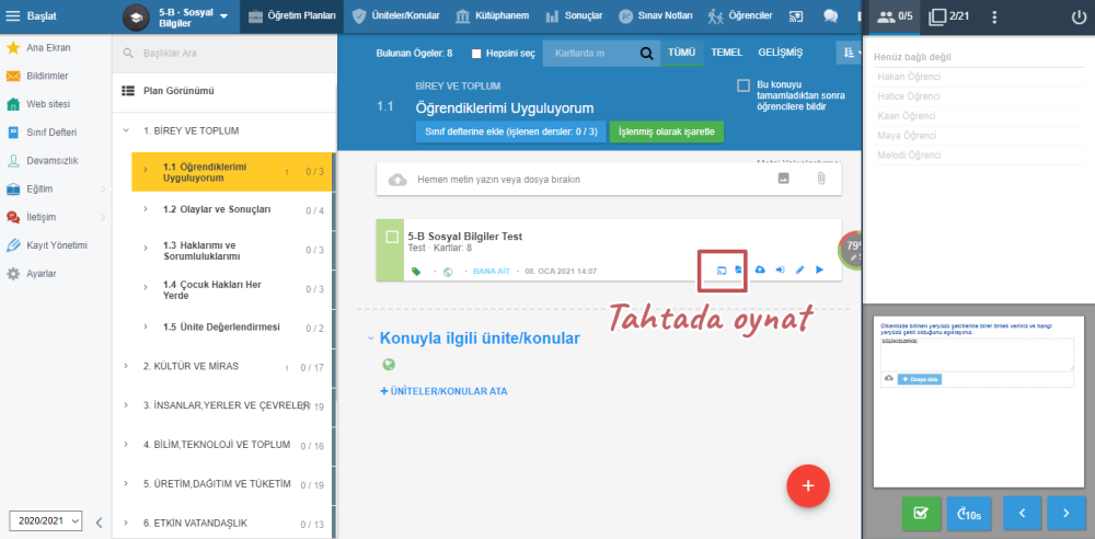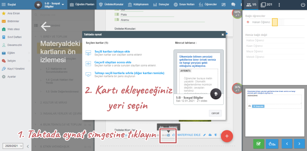 Daha sonra, ders sırasında “Tahtada oynat” seçeneğini seçmeniz yeterlidir.