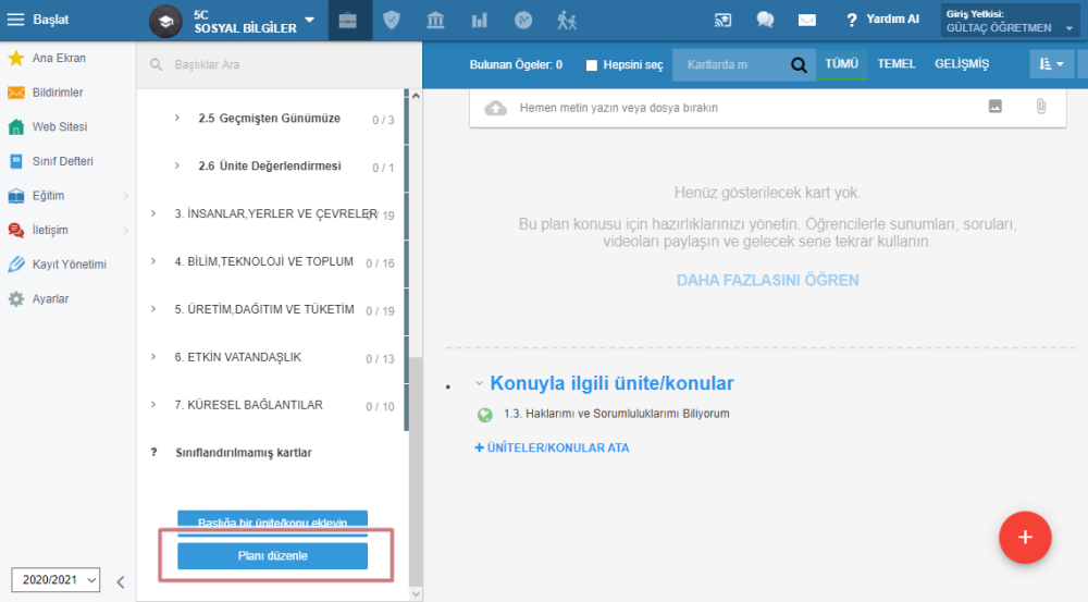 Üstteki menüden öğretim planlarını seçin. Planı düzenlemeye gelin.