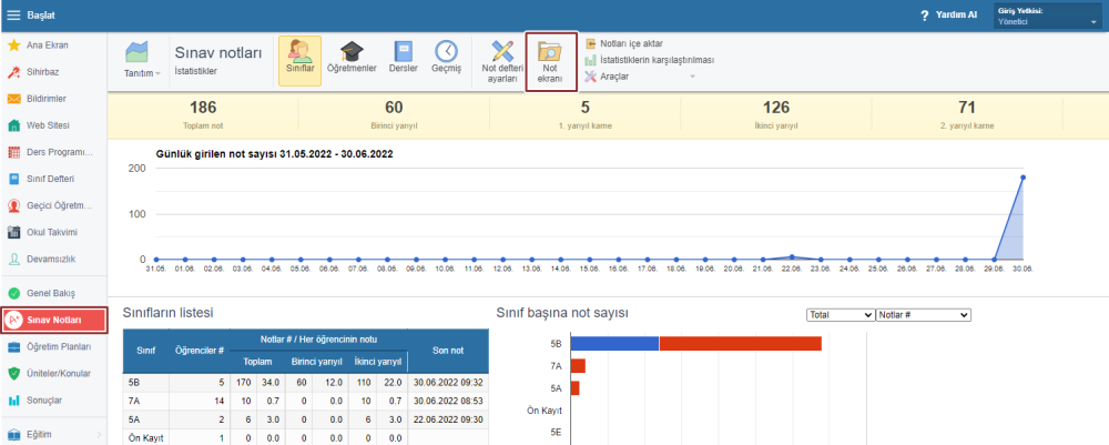 Bunun için ilk önce sol menüden Sınav Notları sekmesine gelin ve Not Ekranı seçeneğine tıklayın.