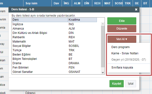 Dersleri eklemek yerine ders programından veya “Sınav Notları” modülünden ders verilerini alabilirsiniz.