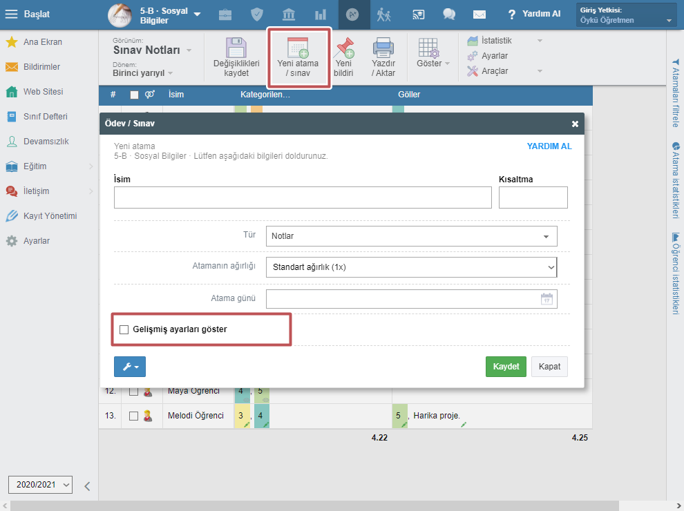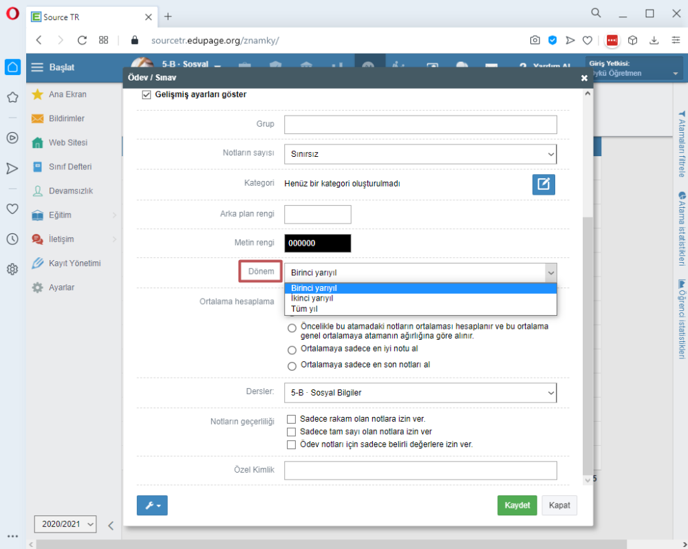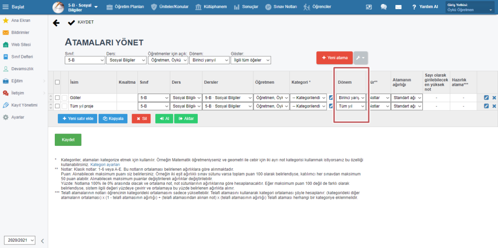 Atama tüm yıl geçerli olacaksa “Dönem” seçeneğinden “tüm yıl” opsiyonunu seçin.
