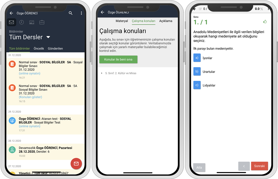 Öğrencilere yaklaşan sınavlar hakkında bildirim gider.