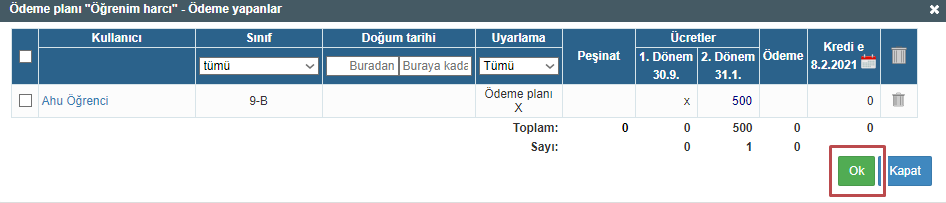 Eğer bir öğrenciye ödeme planı atanmışsa, öğrenci bütün dönemler için ödeme yapmak zorunda değildir. Ödeme planında belirtilen ücret de değiştirilebilir.