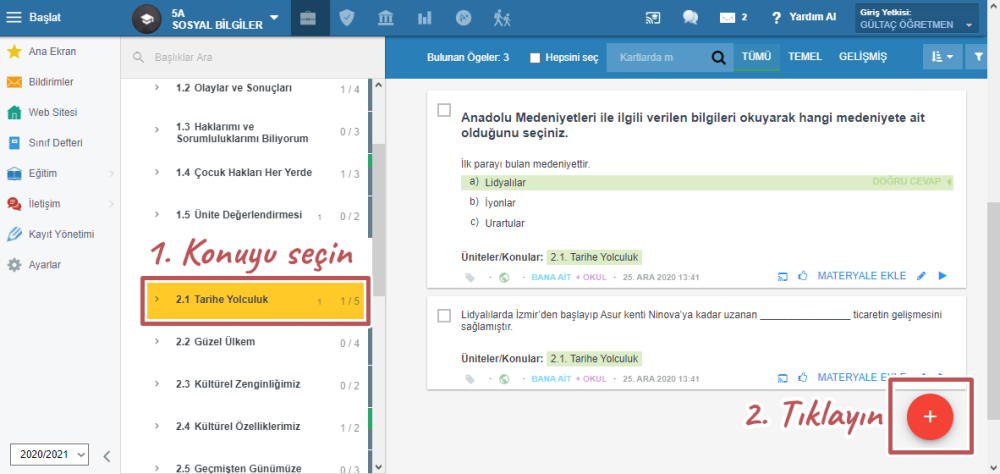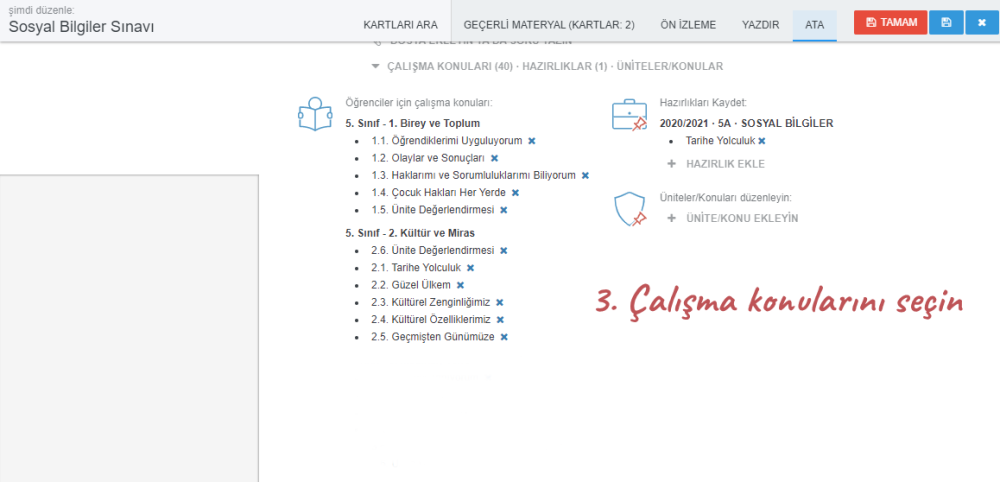 Öğretmen öğrencilerine çalışma konularını söyleyebilir. Bu konular planlardan veya ünitelerden olabilir.