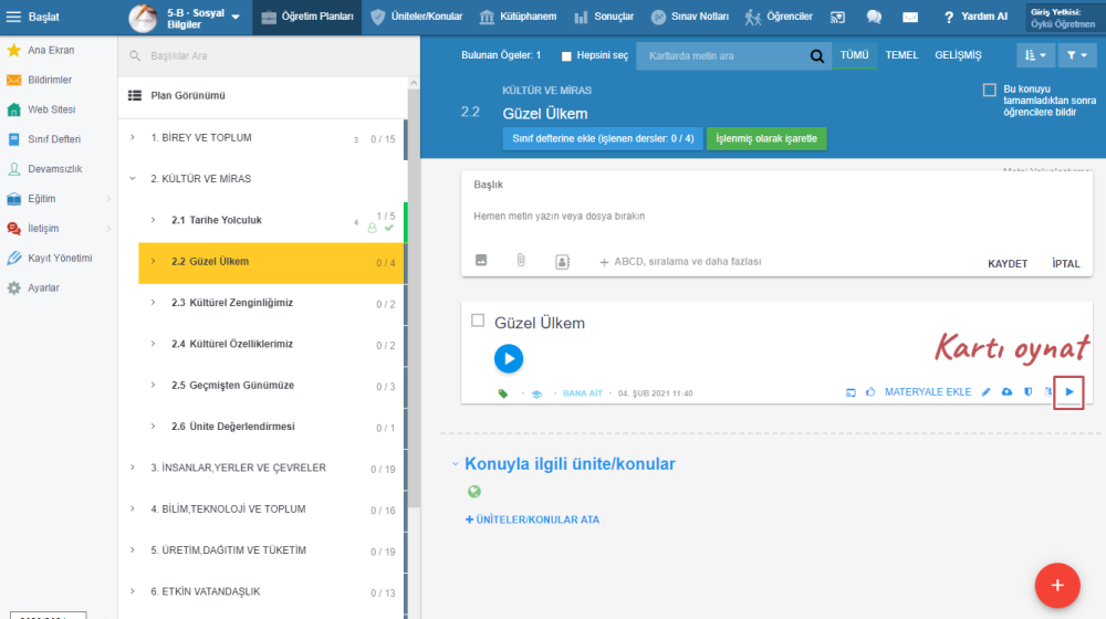 Ses dosyası eklemek istediğiniz konuyu seçin. Dosyayı sürükleyin ve başlangıç kartının üstüne getirin.
