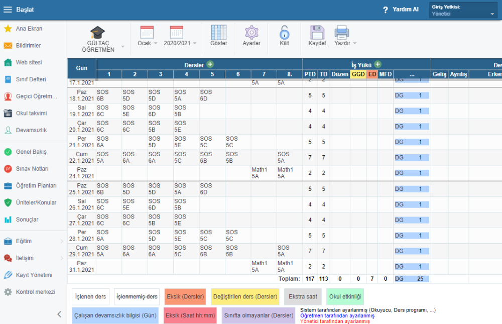5. aSc TimeTables, Geçici Öğretmen Atama ve aSc sınıf defteri ile olan bağlantısı sayesinde, işlenen derslerin kaydını tutabilirsiniz.