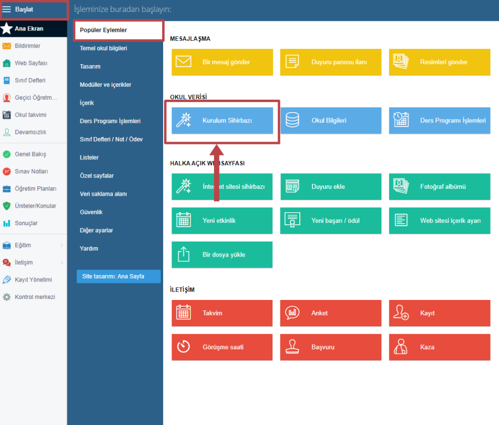 Başlat > Popüler Eylemler > Kurulum Sihirbazı seçeneğine tıklayın.