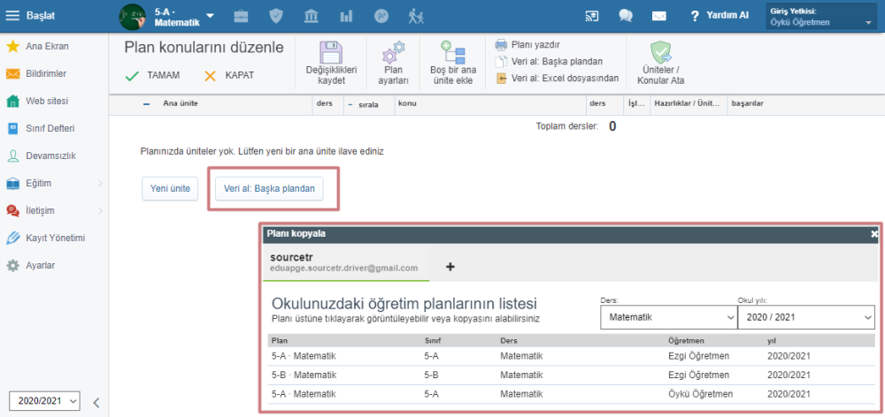 Ayrıca, planı dersi oluştururken de kopyalayabilirsiniz. Önceki yılların planlarını kopyalamak da mümkündür.