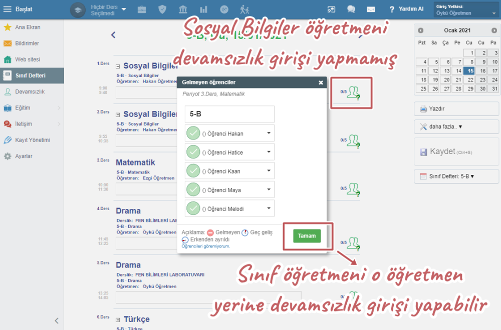 Sınıf öğretmenleri kendi sınıflarının defterlerini düzenleyebilir: