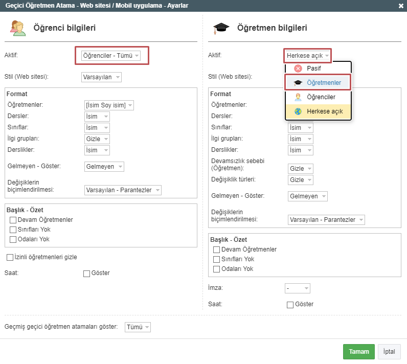Eğer hiç kimseye açık olmasını istemiyorsanız, modülün ayarını “Pasif” olarak değiştirin.