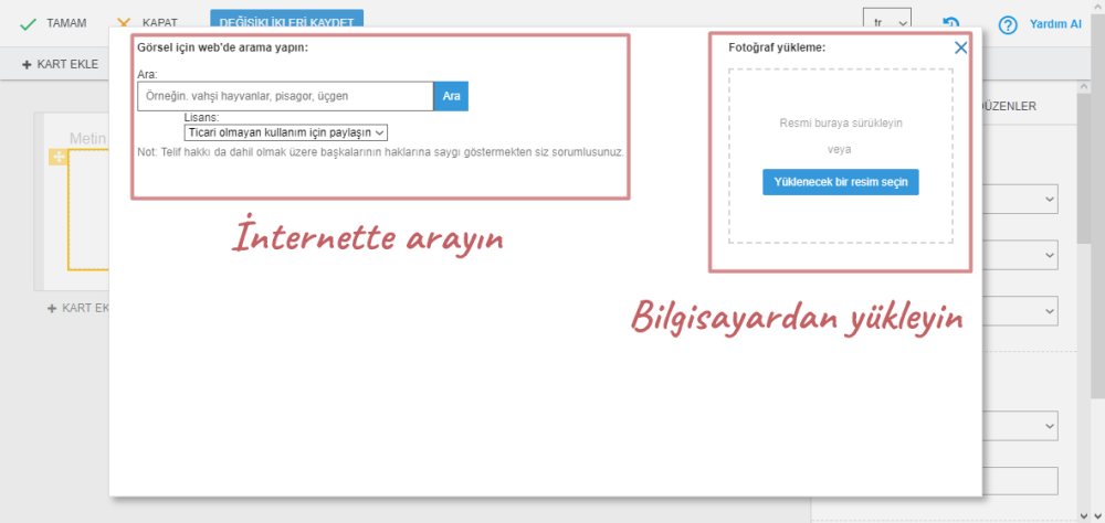 Eklemek istediğiniz şekil/resim bilgisayarınızda değilse, internette arama seçeneğini kullanabilirsiniz.