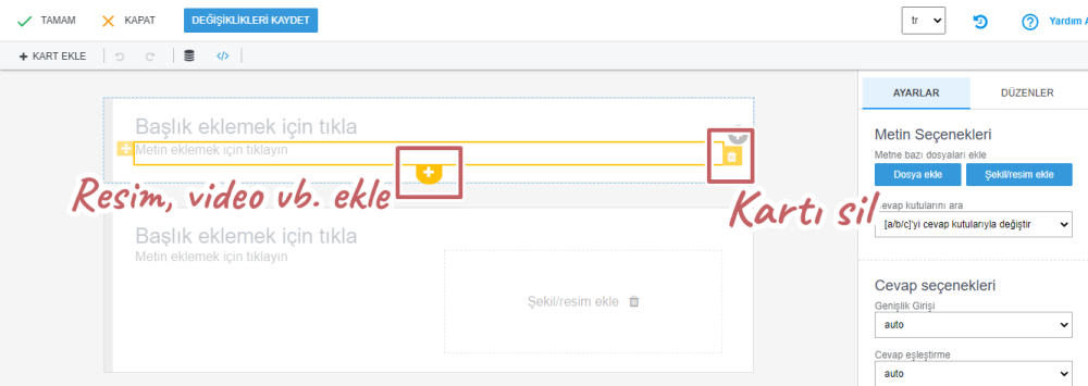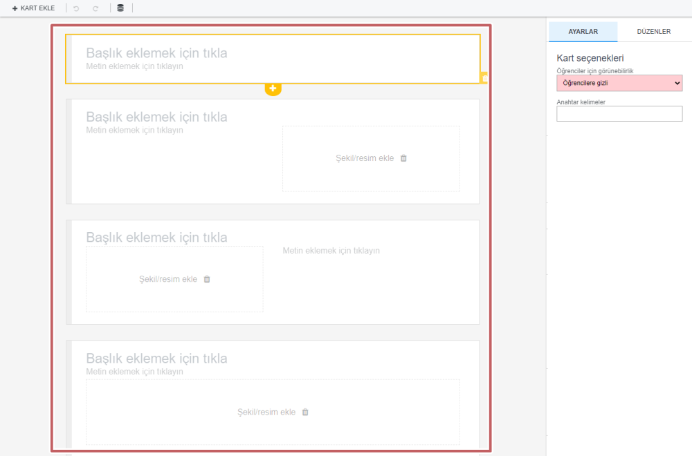Sunumunuza daha fazla kart eklemeniz gerekirse, “+Kart ekle” butonuna tıklayınız.