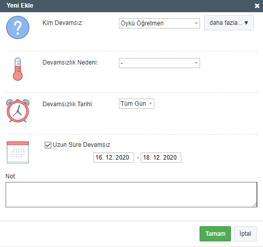 Öğretmenin başvurusu onaylandıktan sonra sistem otomatik olarak öğretmeni izinli kaydetme seçeneğini sunar: