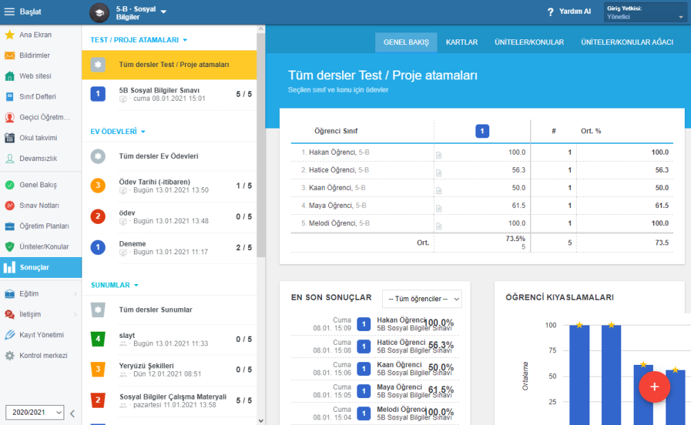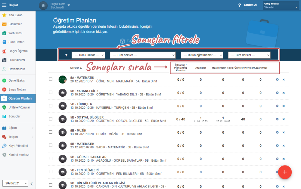 Derslerin konularına bakabilir, öğrencilere atanan öğretim materyallerini kontrol edebilir ya da belirli öğrencilerin veya sınıfın sonuçlarına bakabilir, öğrencilerin konuyu anlayıp anlamadıklarını görebilirsiniz.