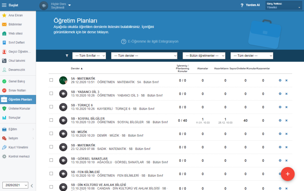 Burada yönetici, öğretmenin öğretim planlarını, öğrencilere atadığı görevleri ve öğretim materyali sayılarını görebilir.